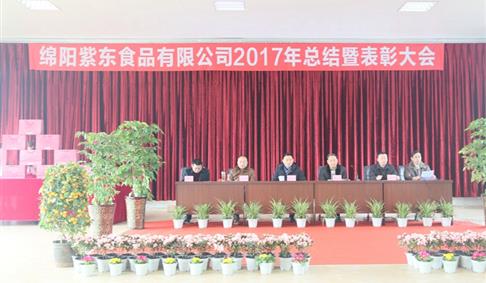 2018年2月3日,绵阳紫东食品有限公司在职工餐厅召开2017年度总结暨表彰大会。